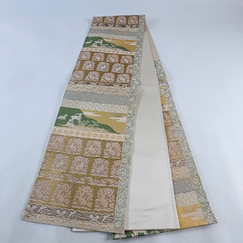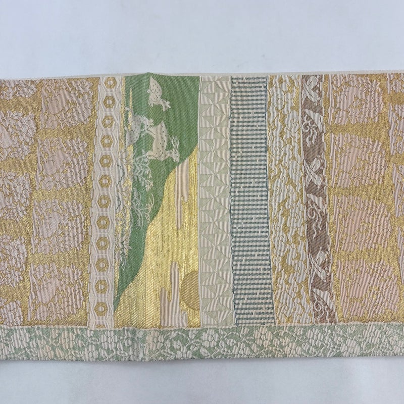 【袋帯】 白系 ベージュ 名品 A 帯丈436cm以上 9990-29990 美品 二万以下