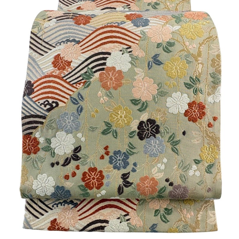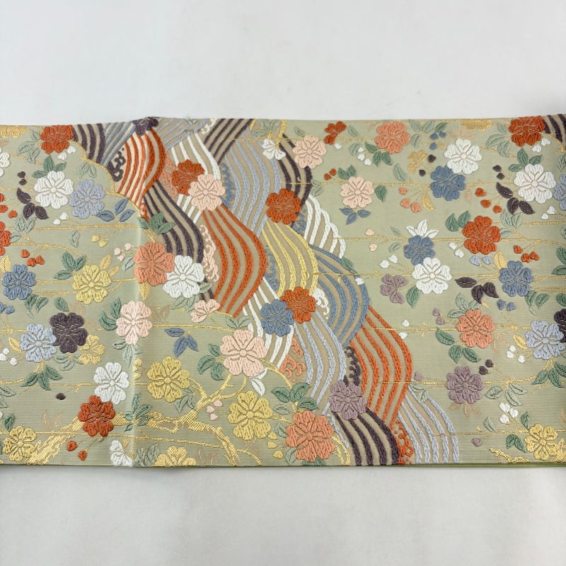 【袋帯】 灰色系 灰緑 名品 A 帯丈426cm~435cm 9990-29990 美品 二万以下