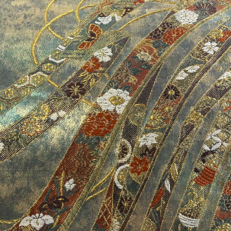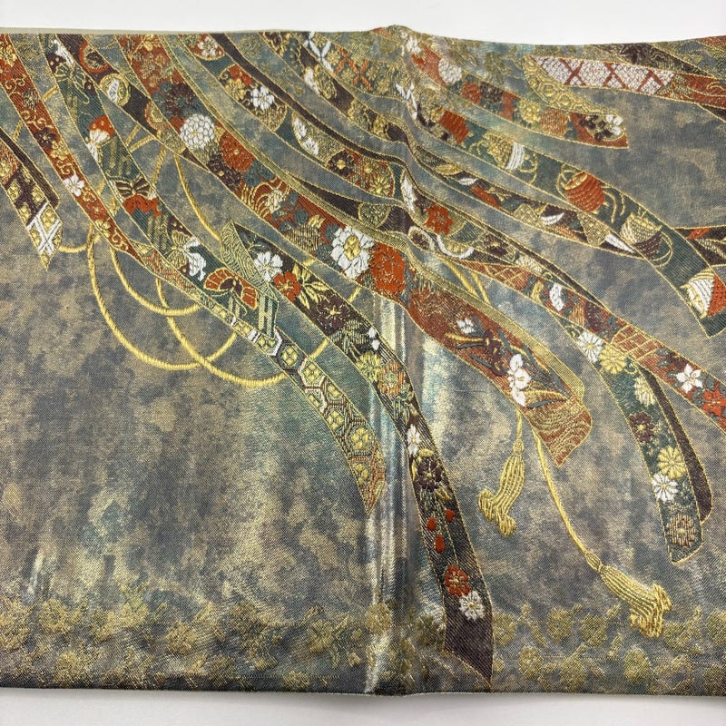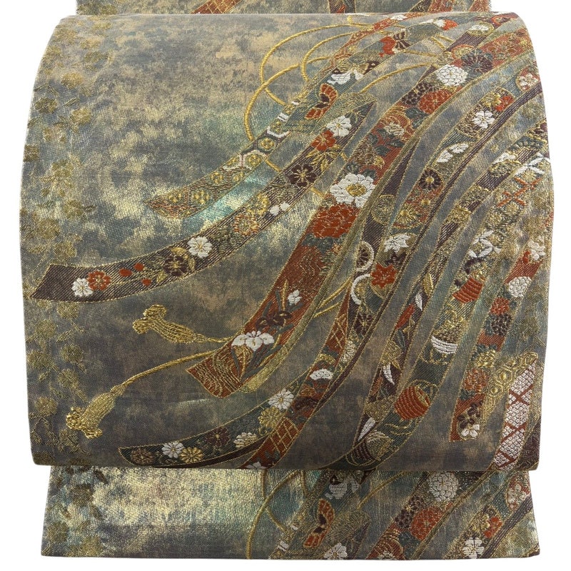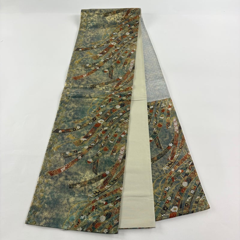 【袋帯】 灰色系 灰緑 秀品 A 帯丈426cm~435cm 7990-9980 美品 二万以下