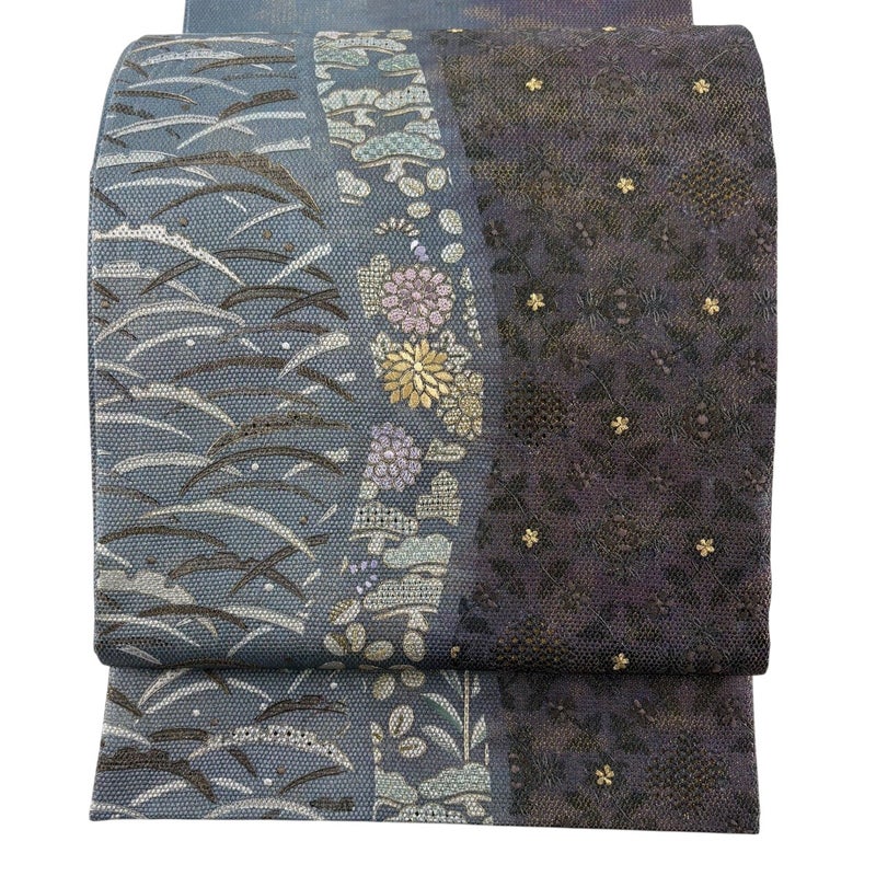 【袋帯】 灰色系 青灰色 秀品 A 帯丈436cm以上 7990-9980 美品 二万以下