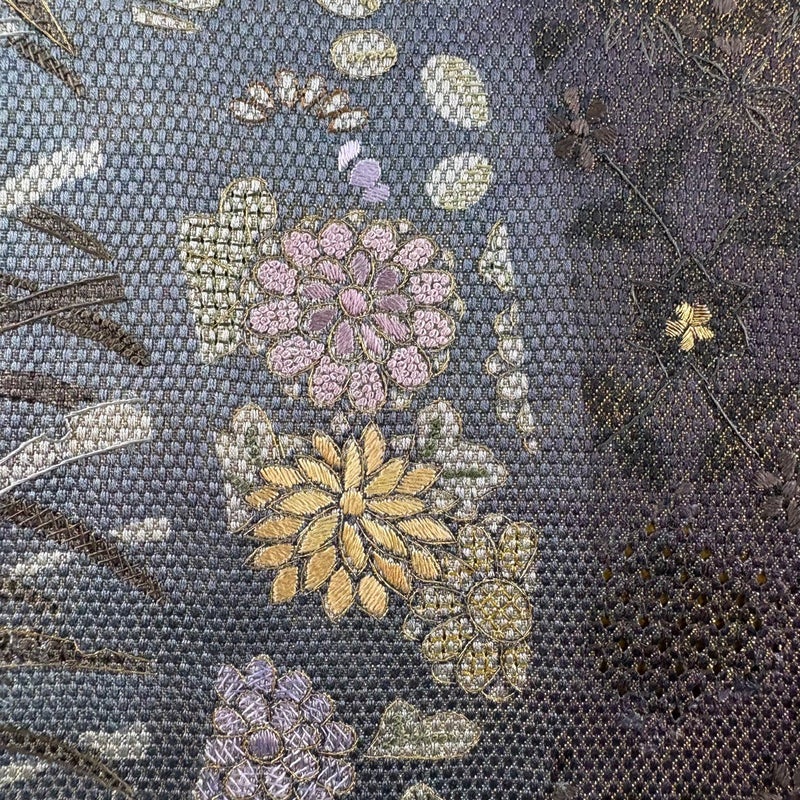 セミフォーマルでお使いいただける袋帯でございます。 見る人に重たい印象を感じさせない女性ならではの、気品豊かな一品です。 リユース品としては目立った染み傷なく、状態の良いお品でございます。 ※なお、厳しく商品の状態確認を行っておりますが、記載の汚れ以外にも見落とし箇所がある可能性がある旨ご了承いただけますと幸いです。 沢山の商品の中からご覧いただき誠にありがとうございます。