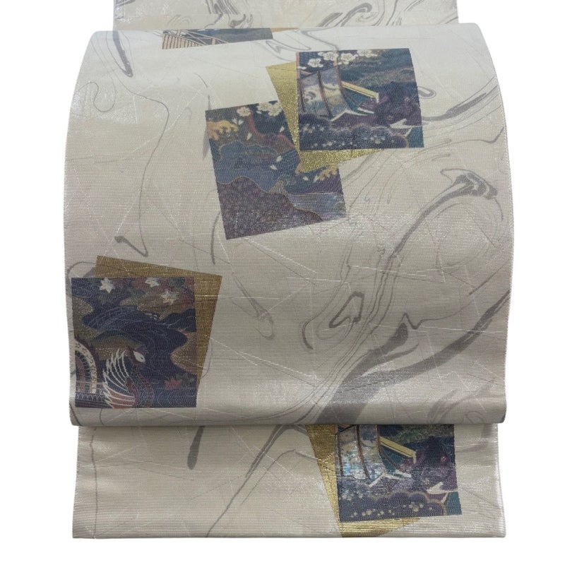 【袋帯】 白系 クリーム 秀品 A 帯丈436cm以上 7990-9980 美品 二万以下
