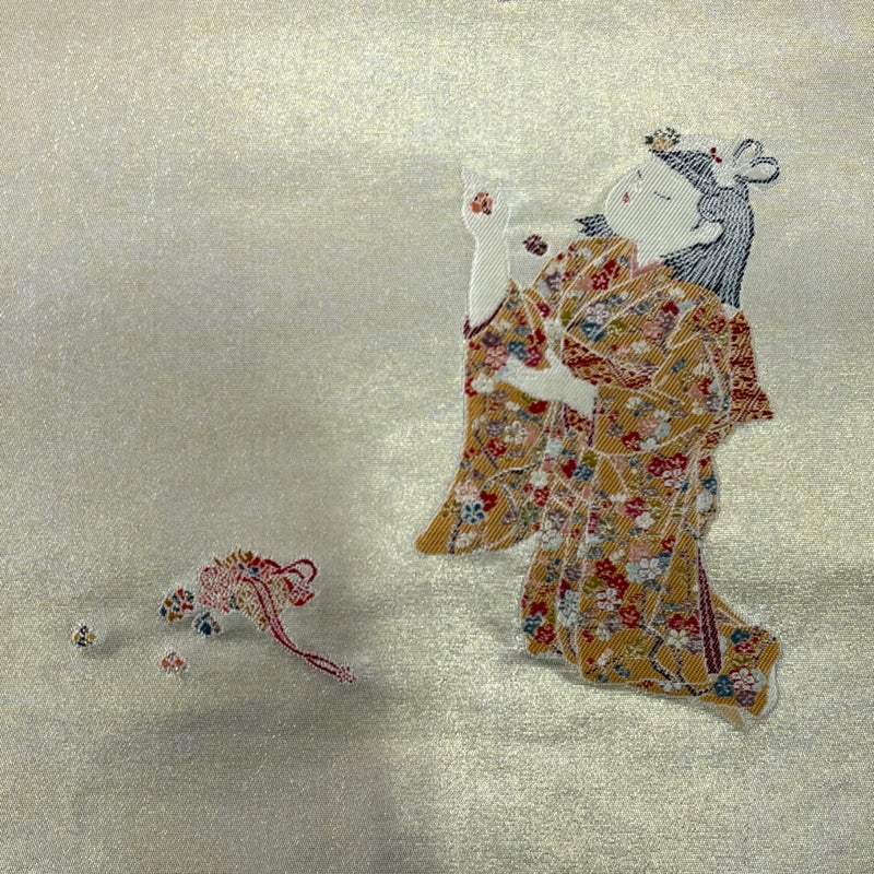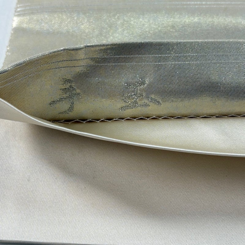 昭和23年に創業した西陣の老舗、「長嶋成織物」の作品です。 セミフォーマルでお使いいただける袋帯でございます。 見る人に重たい印象を感じさせない女性ならではの、気品豊かな一品です。 締め跡がございます。 お太鼓付近にシワ、手先にシール跡、お太鼓垂先間に変色がございます。 リユース品としては良い状態で、まだまだご活用頂けると思われます。 ※なお、厳しく商品の状態確認を行っておりますが、記載の汚れ以外にも見落とし箇所がある可能性がある旨ご了承いただけますと幸いです。 沢山の商品の中からご覧いただき誠にありがとうございます。