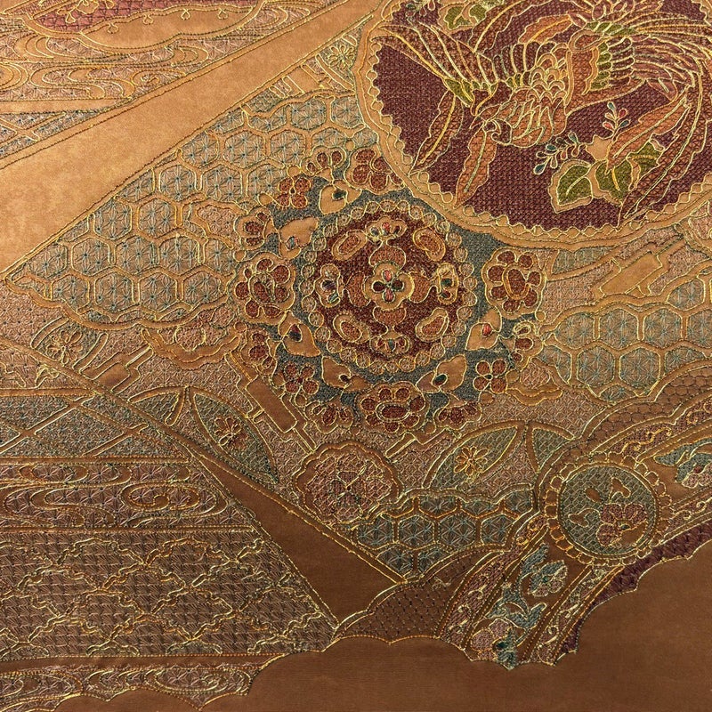セミフォーマルでお使いいただける袋帯でございます。 見る人に重たい印象を感じさせない女性ならではの、気品豊かな一品です。 締め跡がございます。 リユース品としては目立った染み傷なく、状態の良いお品でございます。 ※なお、厳しく商品の状態確認を行っておりますが、記載の汚れ以外にも見落とし箇所がある可能性がある旨ご了承いただけますと幸いです。 沢山の商品の中からご覧いただき誠にありがとうございます。