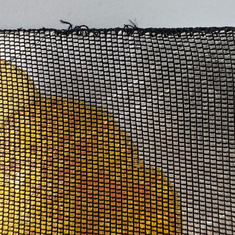 セミフォーマルでお使いいただける袋帯でございます。 見る人に重たい印象を感じさせない女性ならではの、気品豊かな一品です。 締め跡がございます。 お太鼓の帯縁に小さいほつれがございます。 リユース品としては良い状態で、まだまだご活用頂けると思われます。 ※なお、厳しく商品の状態確認を行っておりますが、記載の汚れ以外にも見落とし箇所がある可能性がある旨ご了承いただけますと幸いです。 沢山の商品の中からご覧いただき誠にありがとうございます。