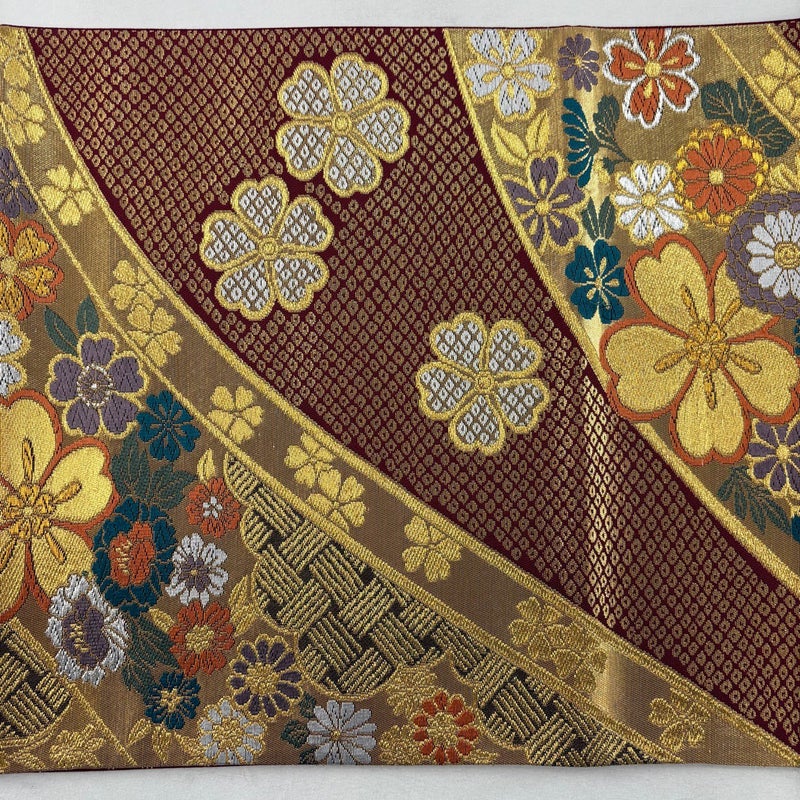【袋帯】 赤系 赤黒 秀品 A 帯丈426cm~435cm 7990-9980 美品 二万以下