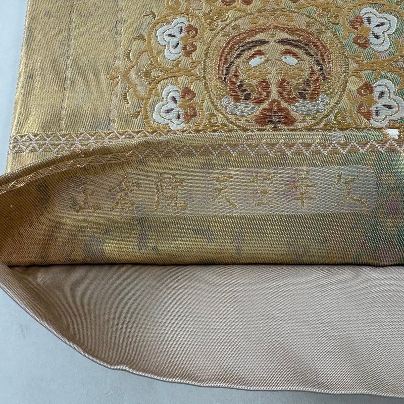 おめでたい席に相応しい意匠の袋帯でございます。 格式高いお席にもお使いいただけますので、お見逃しのないようお願いいたします。 締め跡がございます。 締め跡沿いに箔の傷みがございます。 リユース品としては良い状態で、まだまだご活用頂けると思われます。 ※なお、厳しく商品の状態確認を行っておりますが、記載の汚れ以外にも見落とし箇所がある可能性がある旨ご了承いただけますと幸いです。 沢山の商品の中からご覧いただき誠にありがとうございます。