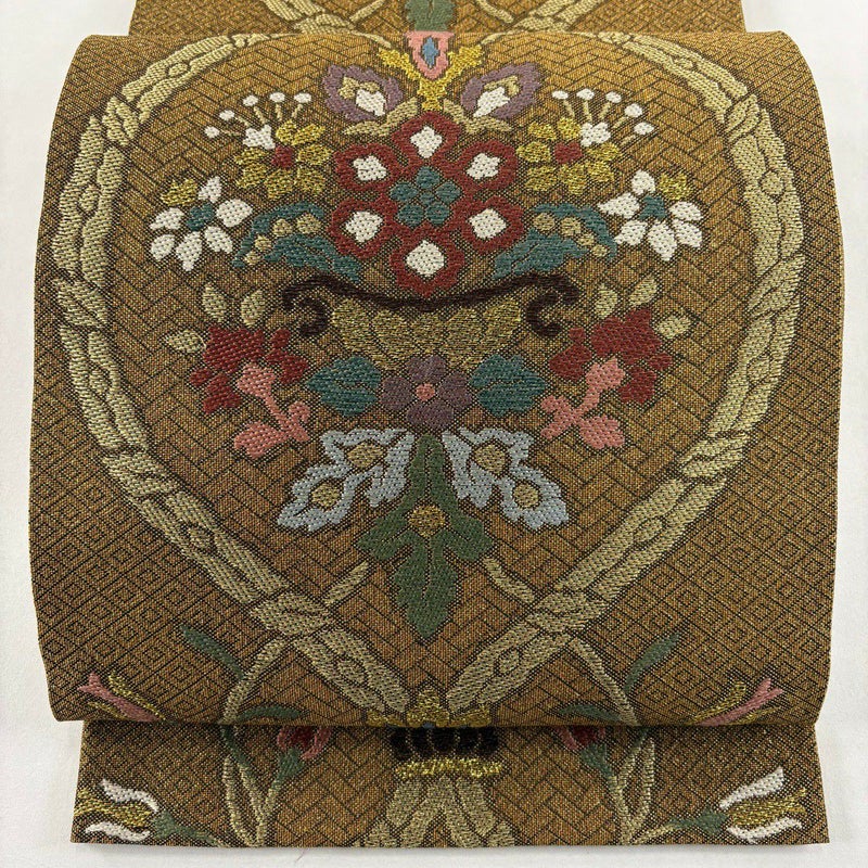 【袋帯】 茶系 茶色 名品 A 帯丈401cm~425cm 9990-29990 美品 二万以下