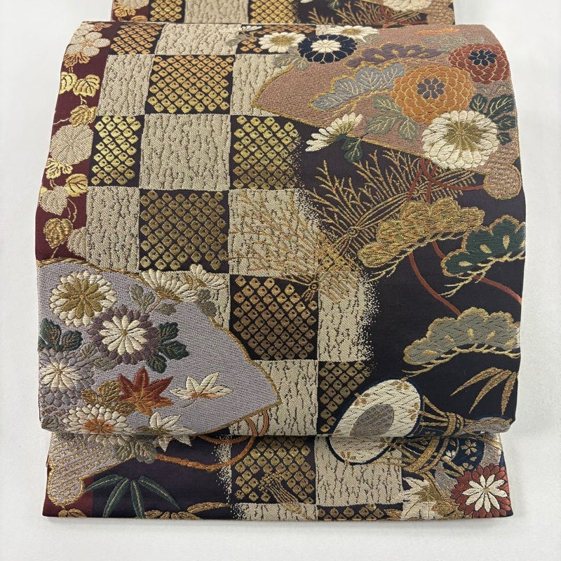 おめでたい席に相応しい意匠の袋帯でございます。 格式高いお席にもお使いいただけますので、お見逃しのないようお願いいたします。 締め跡がございます。 表地所々に糸ゆるみがございます。 リユース品としては良い状態で、まだまだご活用頂けると思われます。 ※なお、厳しく商品の状態確認を行っておりますが、記載の汚れ以外にも見落とし箇所がある可能性がある旨ご了承いただけますと幸いです。 沢山の商品の中からご覧いただき誠にありがとうございます。