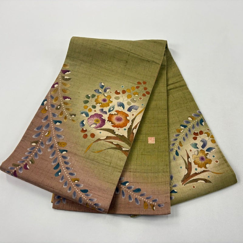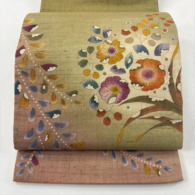 【袋帯】 茶系 茶緑色 名品 A 帯丈436cm以上 9990-29990 美品 二万以下
