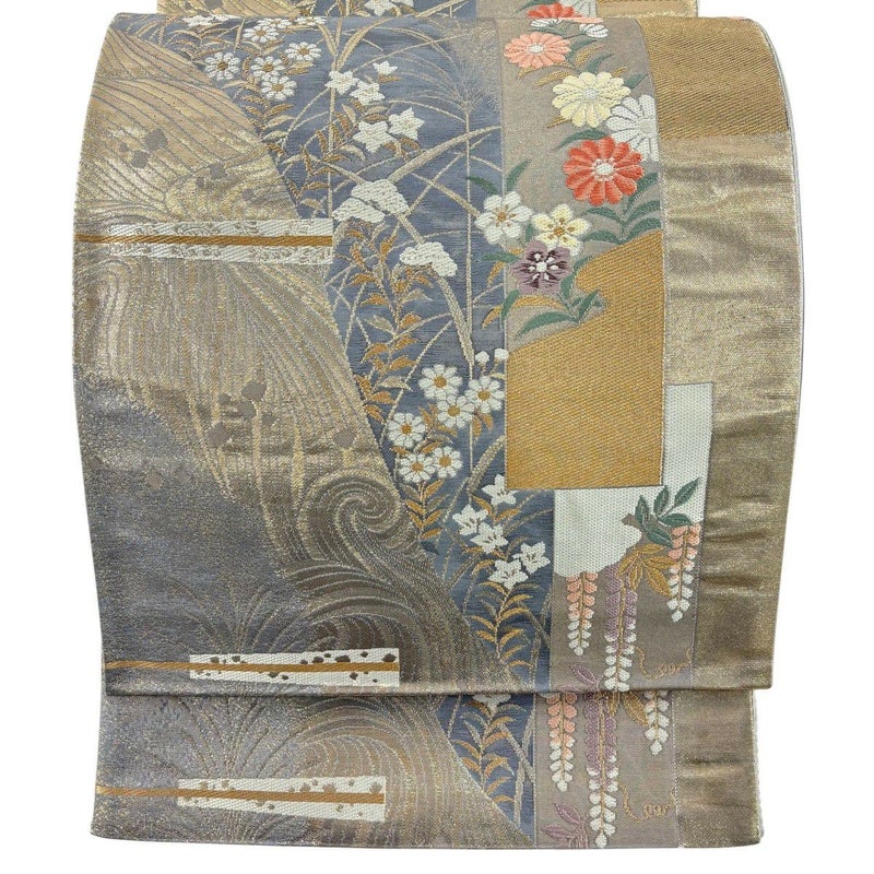 【袋帯】 灰色系 灰色 秀品 B 帯丈426cm~435cm 4000-7980 二万以下