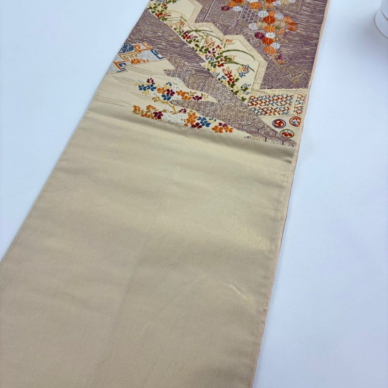 【袋帯】 白系 ベージュ 名品 B 帯丈436cm以上 4000-7980 二万以下
