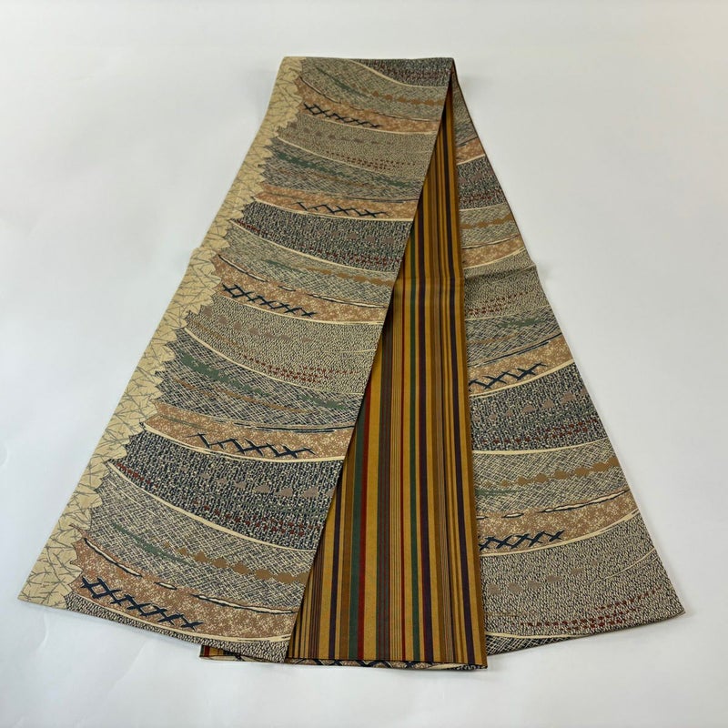 【着物ランク】秀品 【素材】正絹 【帯丈】約436cm 【帯幅】約31cm 【帯仕立て】仕立て上がり 【状態ランク】ランクA 【帯着用シーン】普段使いの洒落帯(紬・小紋)