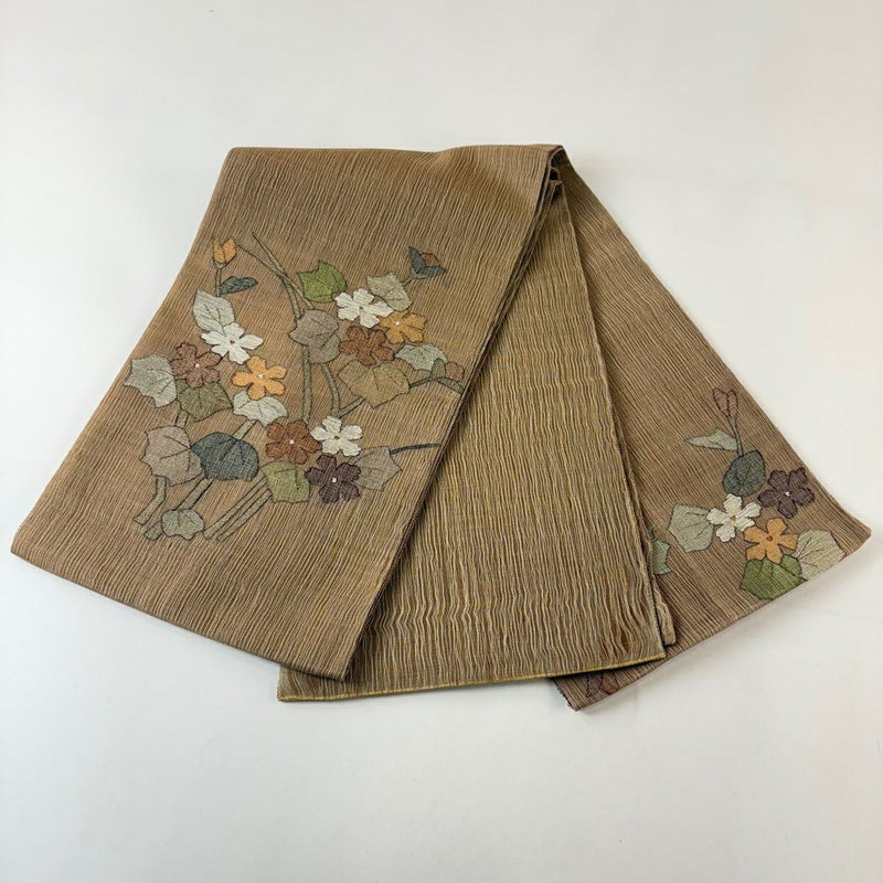 普段使いでお使いいただける袋帯の夏帯でございます。 カジュアルな装いに合わせてお使いください。 締め跡がございます。 リユース品としては目立った染み傷なく、状態の良いお品でございます。 ※なお、厳しく商品の状態確認を行っておりますが、記載の汚れ以外にも見落とし箇所がある可能性がある旨ご了承いただけますと幸いです。 沢山の商品の中からご覧いただき誠にありがとうございます。