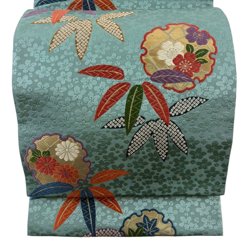 【袋帯】 青系 青緑 秀品 A 帯丈436cm以上 7990-9980 美品 二万以下