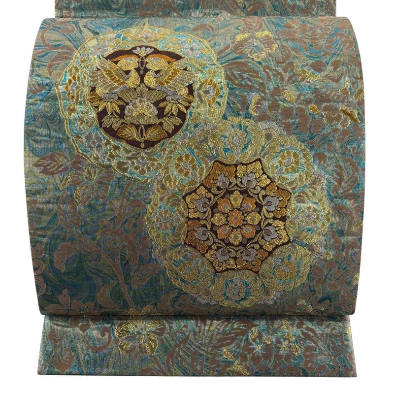 【袋帯】 灰色系 灰緑 秀品 B 帯丈436cm以上 4000-7980 二万以下