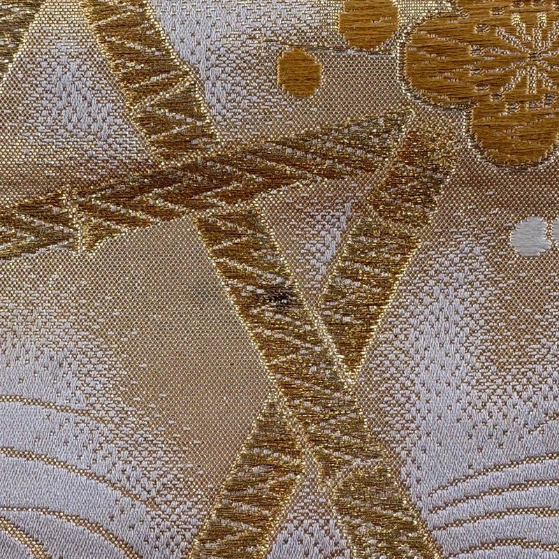 おめでたい席に相応しい意匠の袋帯でございます。 格式高いお席にもお使いいただけますので、お見逃しのないようお願いいたします。 中無地にヤケ、中無地所々にシミ、表地所々に若干の唐織の糸ゆるみがございます。 リユース品としては目立った染み傷なく、状態の良いお品でございます。 ※なお、厳しく商品の状態確認を行っておりますが、記載の汚れ以外にも見落とし箇所がある可能性がある旨ご了承いただけますと幸いです。 沢山の商品の中からご覧いただき誠にありがとうございます。