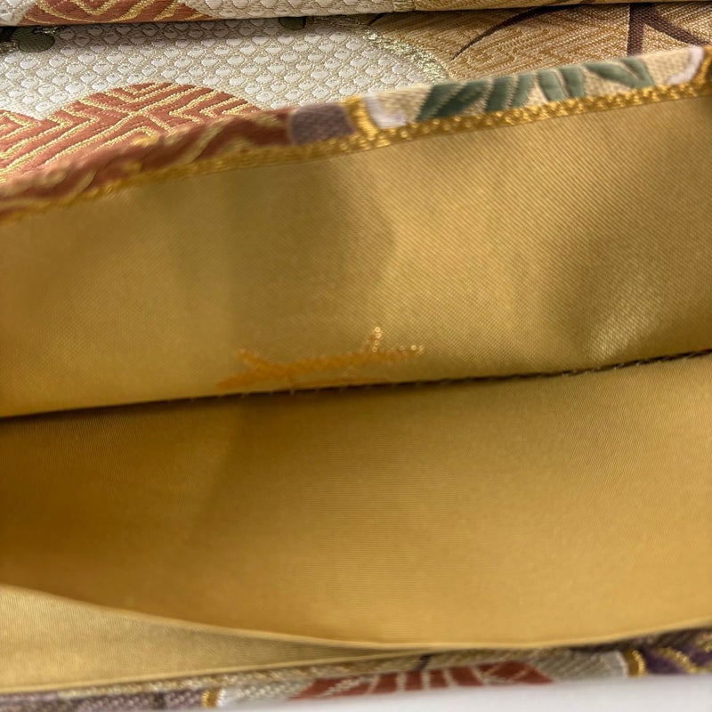 セミフォーマルでお使いいただける袋帯でございます。 見る人に重たい印象を感じさせない女性ならではの、気品豊かな一品です。 帯芯が入っておりません。 締め跡がございます。 リユース品としては目立った染み傷なく、状態の良いお品でございます。 ※なお、厳しく商品の状態確認を行っておりますが、記載の汚れ以外にも見落とし箇所がある可能性がある旨ご了承いただけますと幸いです。 沢山の商品の中からご覧いただき誠にありがとうございます。
