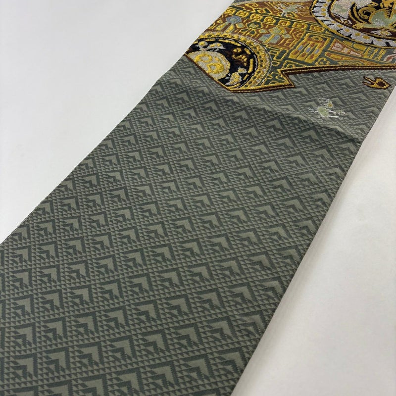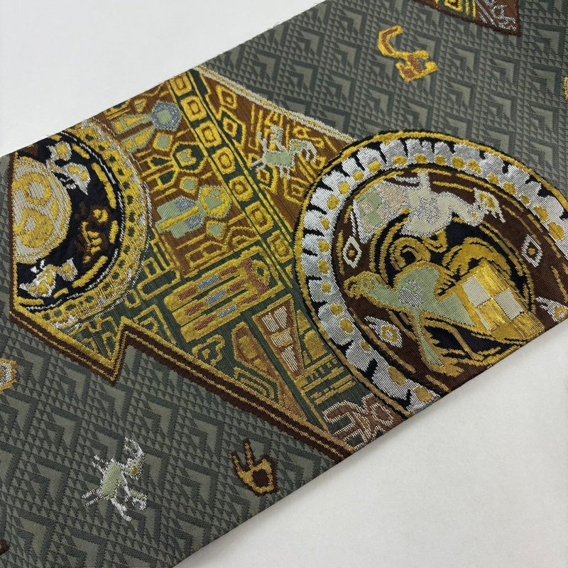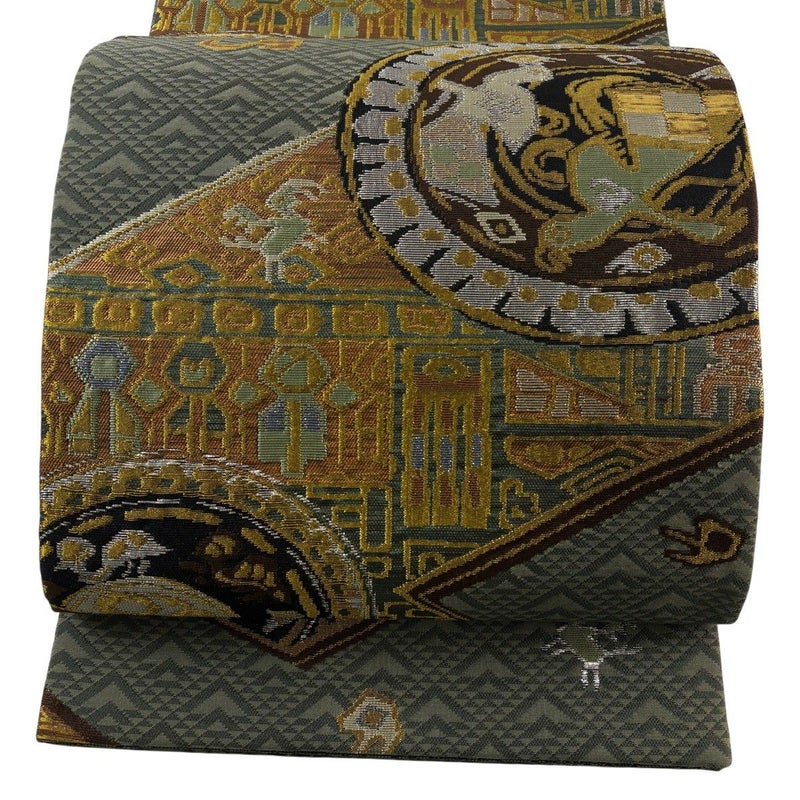 【袋帯】 灰色系 灰緑 名品 A 帯丈436cm以上 9990-29990 美品 二万以下
