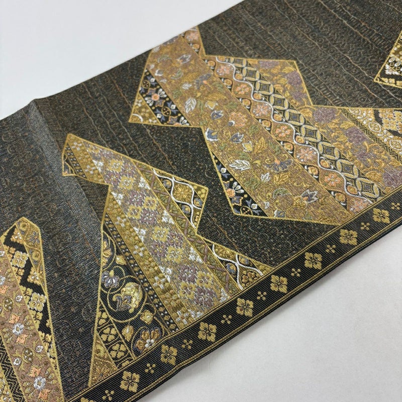 【袋帯】 灰色系 灰緑 秀品 A 帯丈426cm~435cm 7990-9980 美品 二万以下