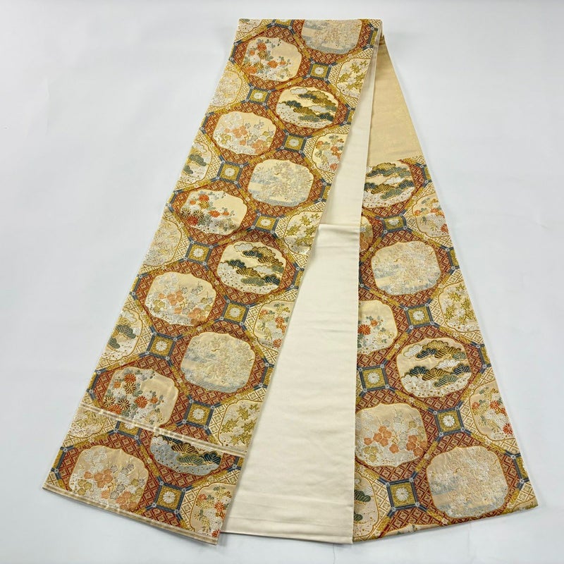 【着物ランク】名品 【素材】正絹 【帯丈】約438cm 【帯幅】約31cm 【帯仕立て】仕立て上がり 【状態ランク】ランクA 【帯着用シーン】フォーマル(留袖・振袖・訪問着)