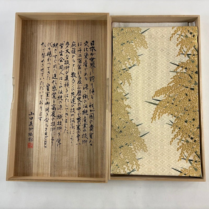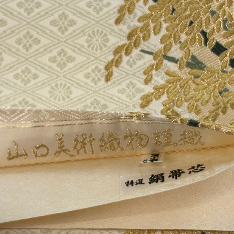 【着物ランク】逸品 【素材】正絹 【帯丈】約440cm 【帯幅】約31cm 【帯仕立て】仕立て上がり 【状態ランク】ランクA 【作家名】山口美術織物 【帯着用シーン】フォーマル(留袖・振袖・訪問着)