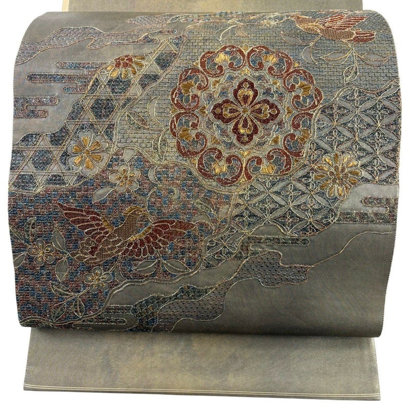 【袋帯】 灰色系 灰色 秀品 A 帯丈426cm~435cm 7990-9980 美品 二万以下
