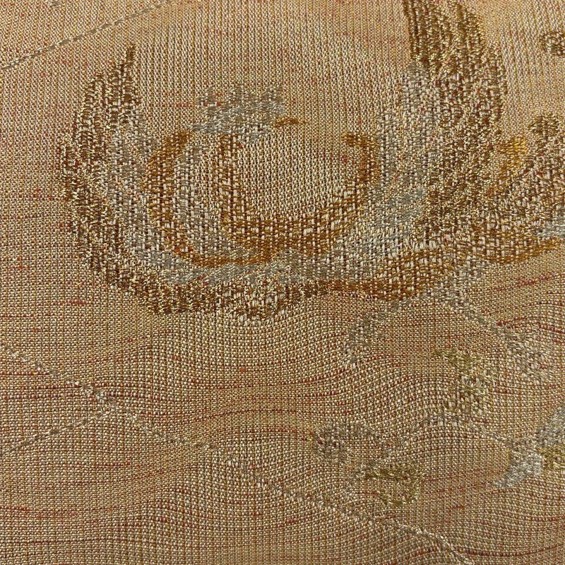 セミフォーマルでお使いいただける袋帯でございます。 見る人に重たい印象を感じさせない女性ならではの、気品豊かな一品です。 締め跡がございます。 リユース品としては目立った染み傷なく、状態の良いお品でございます。 ※なお、厳しく商品の状態確認を行っておりますが、記載の汚れ以外にも見落とし箇所がある可能性がある旨ご了承いただけますと幸いです。 沢山の商品の中からご覧いただき誠にありがとうございます。
