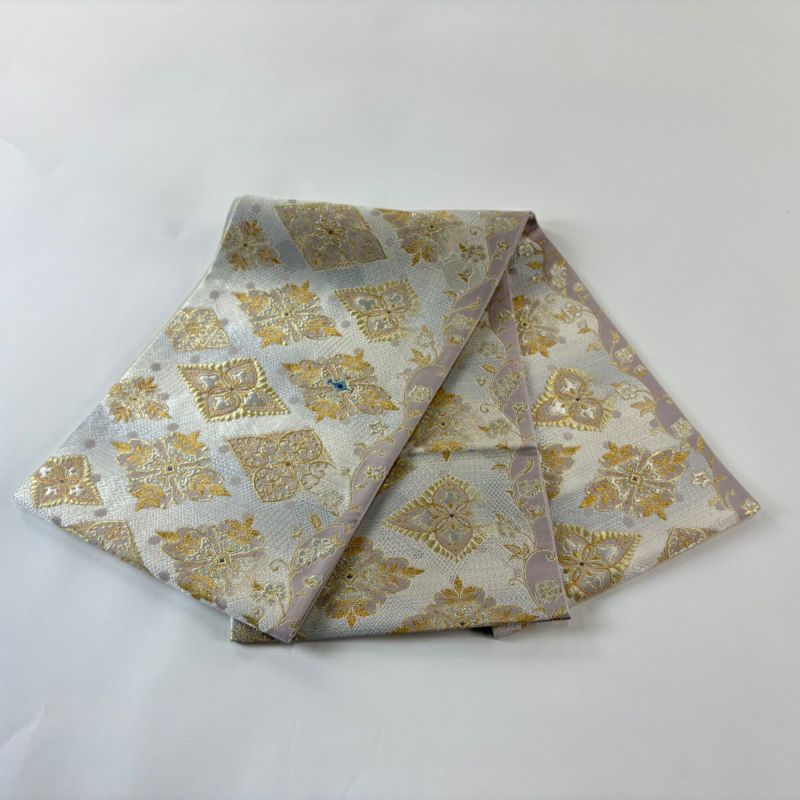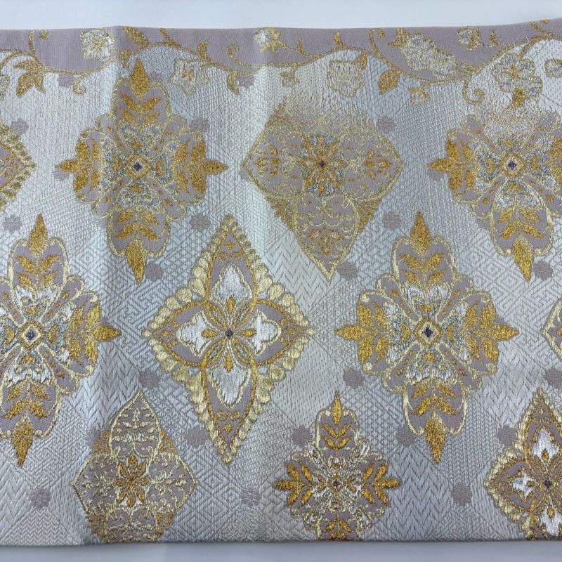 セミフォーマルでお使いいただける袋帯でございます。 見る人に重たい印象を感じさせない女性ならではの、気品豊かな一品です。 裏地に薄い締め跡がございます。 リユース品としては目立った染み傷なく、状態の良いお品でございます。 ※なお、厳しく商品の状態確認を行っておりますが、記載の汚れ以外にも見落とし箇所がある可能性がある旨ご了承いただけますと幸いです。 沢山の商品の中からご覧いただき誠にありがとうございます。