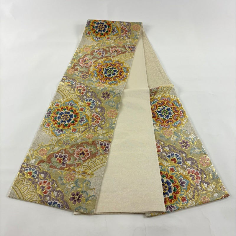 【袋帯】 白系 クリーム 秀品 A 帯丈426cm~435cm 7990-9980 美品 二万以下