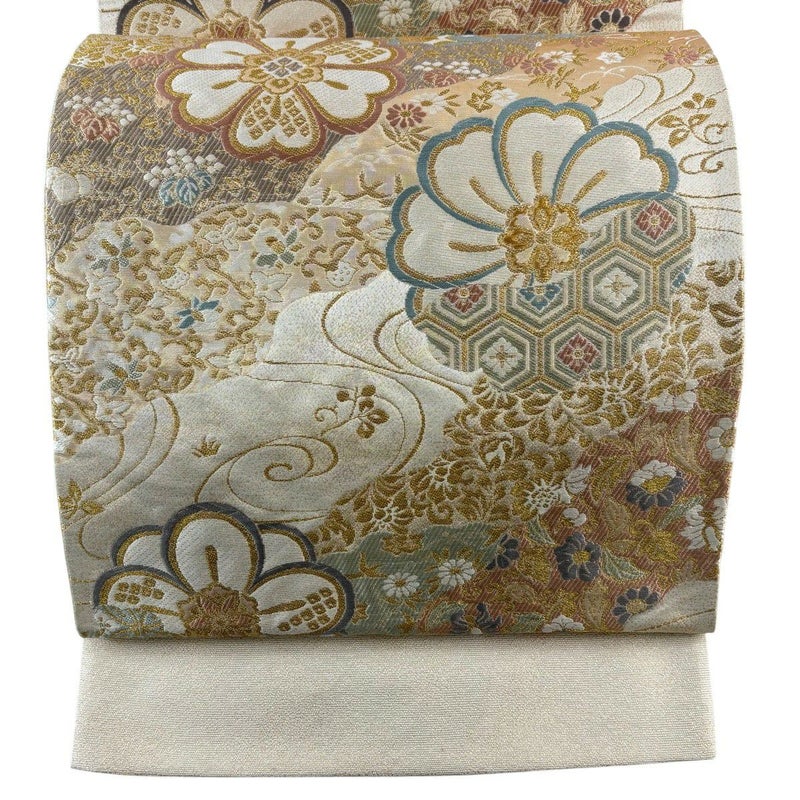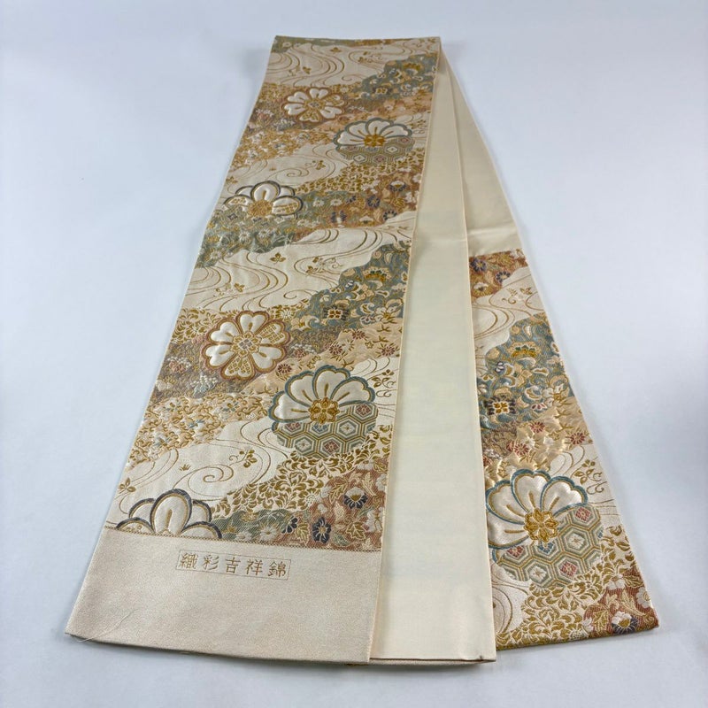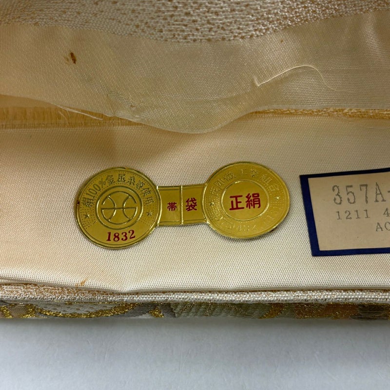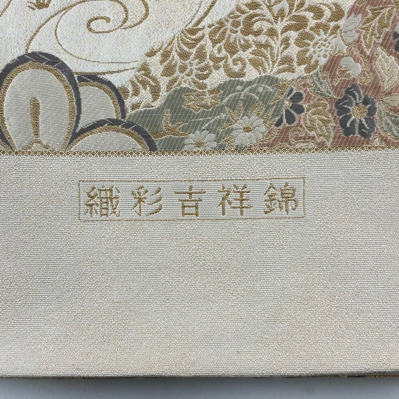 【袋帯】 白系 ベージュ 秀品 A 帯丈436cm以上 7990-9980 美品 二万以下