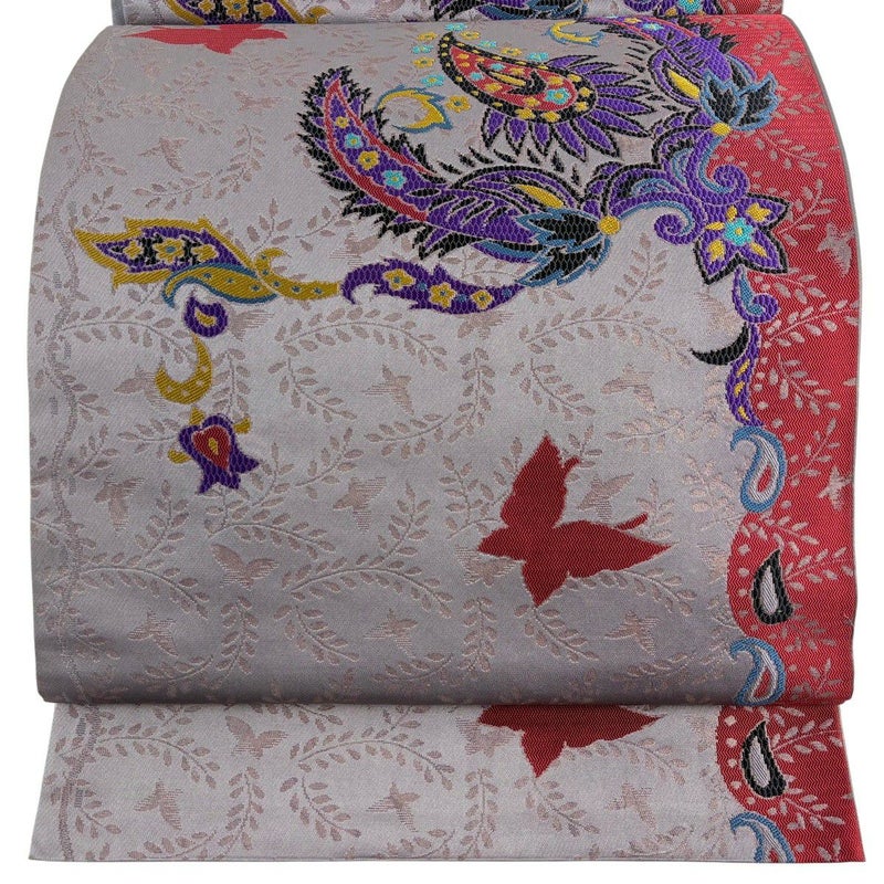 【袋帯】 灰色系 灰紫 秀品 A 帯丈426cm~435cm 7990-9980 美品 二万以下