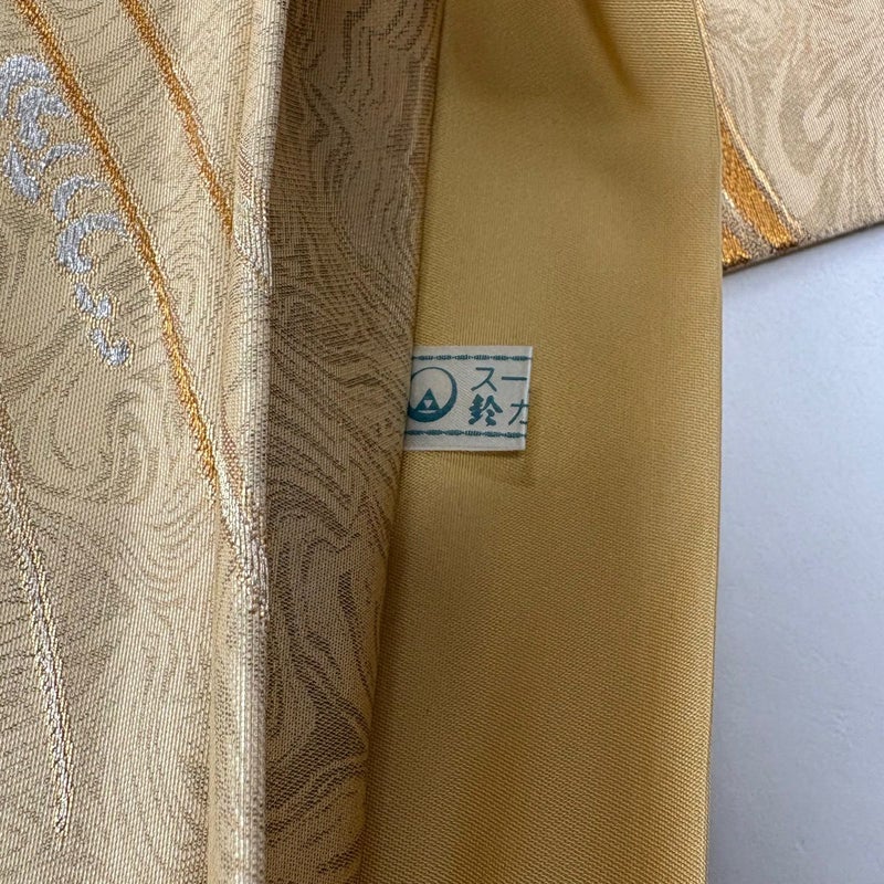 セミフォーマルでお使いいただける袋帯でございます。 見る人に重たい印象を感じさせない女性ならではの、気品豊かな一品です。 締め跡がございます。 リユース品としては目立った染み傷なく、状態の良いお品でございます。 ※なお、厳しく商品の状態確認を行っておりますが、記載の汚れ以外にも見落とし箇所がある可能性がある旨ご了承いただけますと幸いです。 沢山の商品の中からご覧いただき誠にありがとうございます。