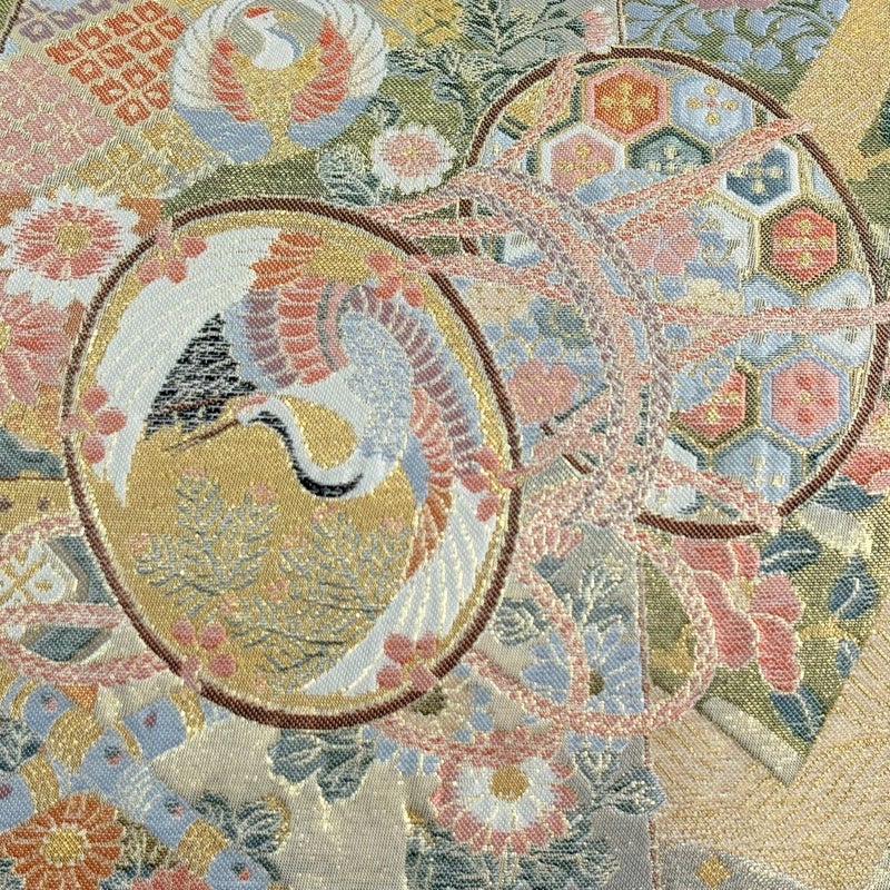 おめでたい席に相応しい意匠の袋帯でございます。 格式高いお席にもお使いいただけますので、お見逃しのないようお願いいたします。 締め跡がございます。 リユース品としては目立った染み傷なく、状態の良いお品でございます。 ※なお、厳しく商品の状態確認を行っておりますが、記載の汚れ以外にも見落とし箇所がある可能性がある旨ご了承いただけますと幸いです。 沢山の商品の中からご覧いただき誠にありがとうございます。