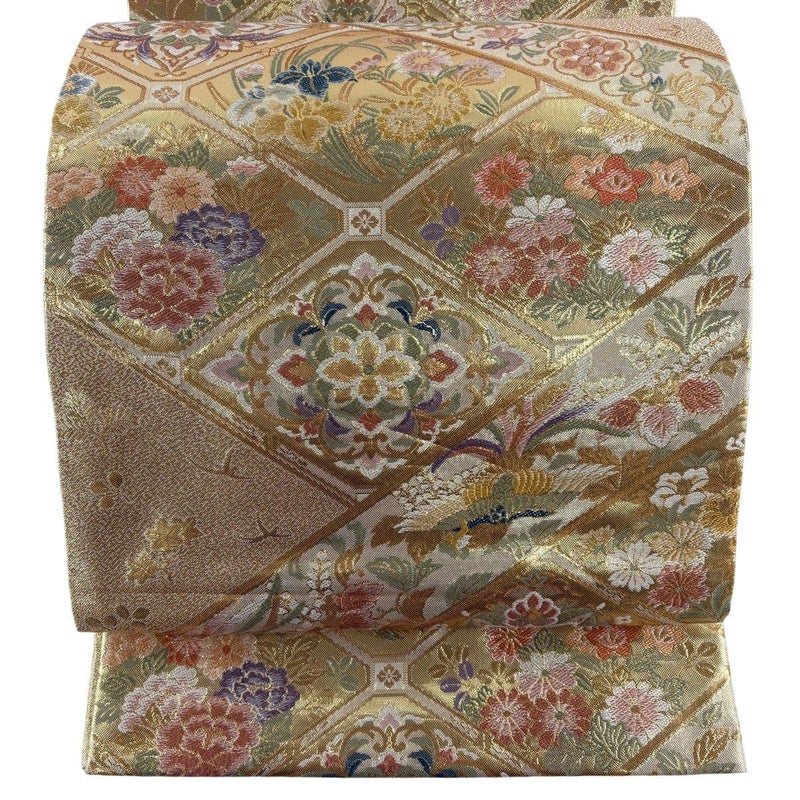おめでたい席に相応しい意匠の袋帯でございます。 格式高いお席にもお使いいただけますので、お見逃しのないようお願いいたします。 締め跡がございます。 リユース品としては目立った染み傷なく、状態の良いお品でございます。 ※なお、厳しく商品の状態確認を行っておりますが、記載の汚れ以外にも見落とし箇所がある可能性がある旨ご了承いただけますと幸いです。 沢山の商品の中からご覧いただき誠にありがとうございます。