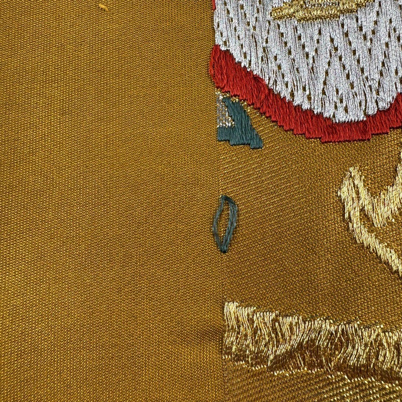おめでたい席に相応しい意匠の袋帯でございます。 格式高いお席にもお使いいただけますので、お見逃しのないようお願いいたします。 締め跡がございます。 中無地に点シミ、手先に小さな糸ゆるみがございます。 リユース品としては目立った染み傷なく、状態の良いお品でございます。 ※なお、厳しく商品の状態確認を行っておりますが、記載の汚れ以外にも見落とし箇所がある可能性がある旨ご了承いただけますと幸いです。 沢山の商品の中からご覧いただき誠にありがとうございます。