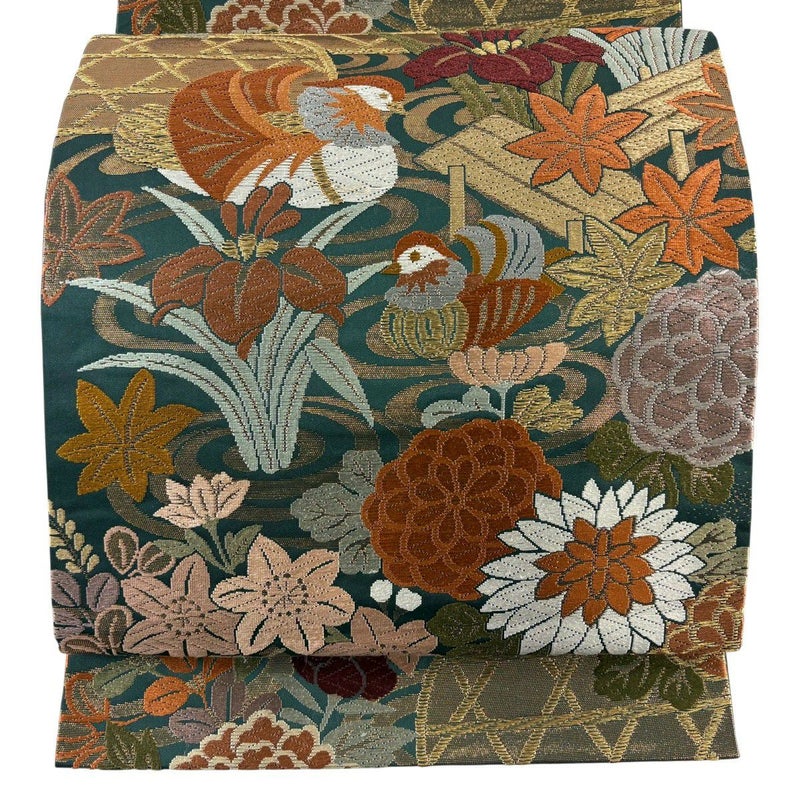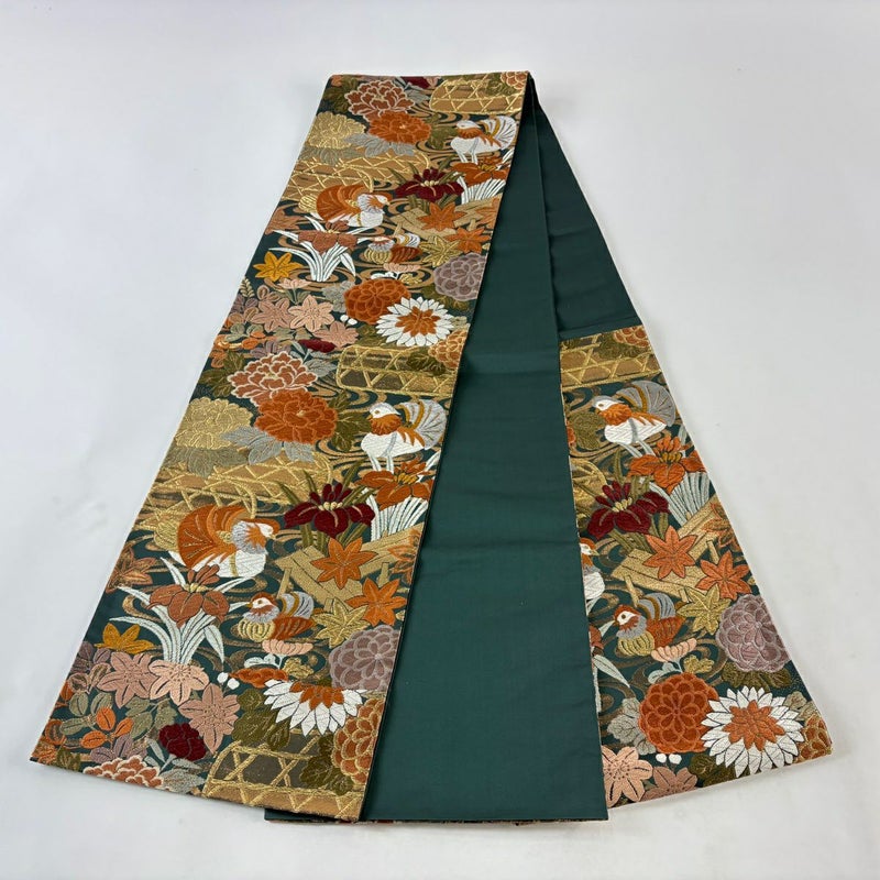【袋帯】 緑系 深緑 秀品 A 帯丈436cm以上 7990-9980 美品 二万以下