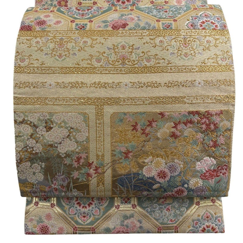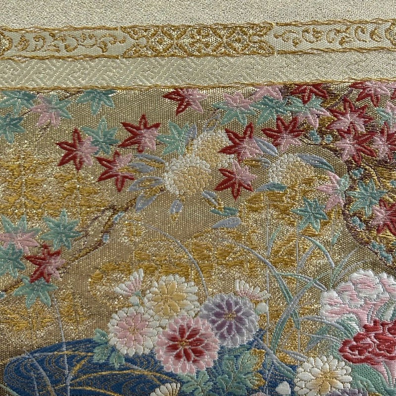 【着物ランク】秀品 【素材】正絹 【帯丈】約436cm 【帯幅】約31cm 【帯仕立て】仕立て上がり 【状態ランク】ランクB 【帯着用シーン】フォーマル(留袖・振袖・訪問着)