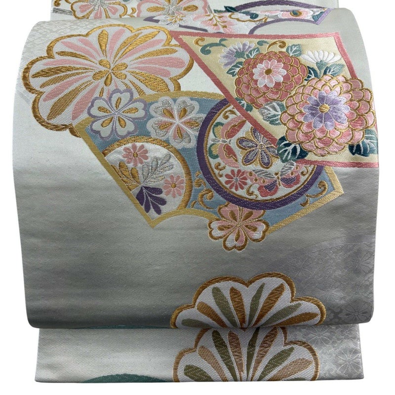 【袋帯】 灰色系 灰緑 秀品 A 帯丈436cm以上 7990-9980 美品 二万以下