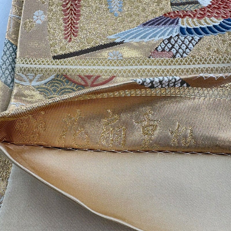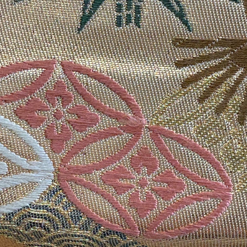 おめでたい席に相応しい意匠の袋帯でございます。 格式高いお席にもお使いいただけますので、お見逃しのないようお願いいたします。 締め跡がございます。 締め跡沿いに汚れ、中無地所々にシワ、前柄とお太鼓垂先間に小さな糸ゆるみがございます。 リユース品としては良い状態で、まだまだご活用頂けると思われます。 ※なお、厳しく商品の状態確認を行っておりますが、記載の汚れ以外にも見落とし箇所がある可能性がある旨ご了承いただけますと幸いです。 沢山の商品の中からご覧いただき誠にありがとうございます。