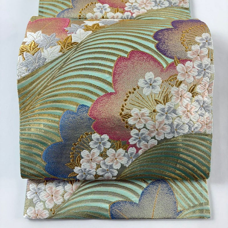 【袋帯】 緑系 薄緑 秀品 A 帯丈436cm以上 7990-9980 美品 二万以下
