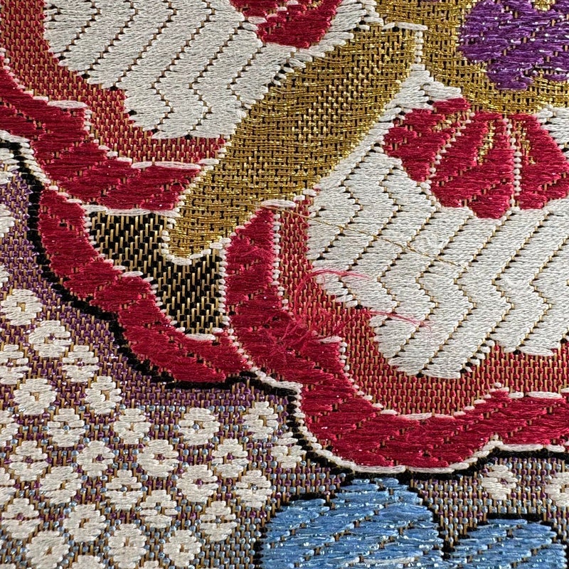セミフォーマルでお使いいただける袋帯でございます。 見る人に重たい印象を感じさせない女性ならではの、気品豊かな一品です。 締め跡がございます。 お太鼓垂先間に糸つれがございます。 リユース品としては良い状態で、まだまだご活用頂けると思われます。 ※なお、厳しく商品の状態確認を行っておりますが、記載の汚れ以外にも見落とし箇所がある可能性がある旨ご了承いただけますと幸いです。 沢山の商品の中からご覧いただき誠にありがとうございます。