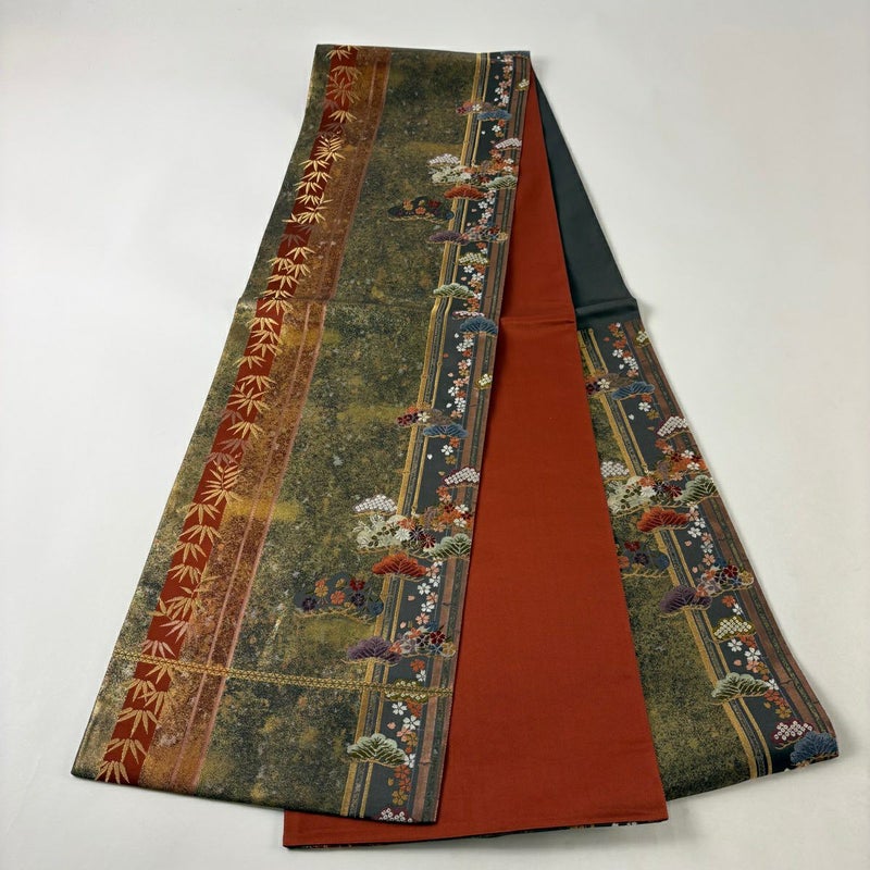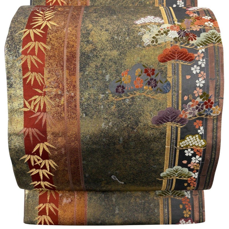 【袋帯】 茶系 茶緑色 秀品 A 帯丈426cm~435cm 7990-9980 美品 二万以下