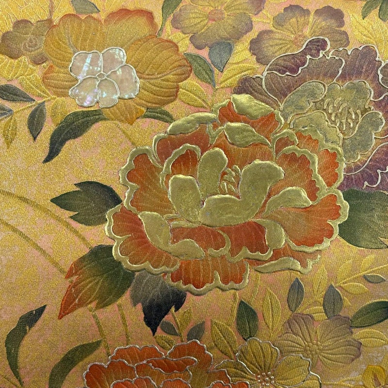 セミフォーマルでお使いいただける袋帯でございます。 見る人に重たい印象を感じさせない女性ならではの、気品豊かな一品です。 帯芯が入っておりません。 前柄柄部分に所々金彩の剥がれがございます。 リユース品としては良い状態で、まだまだご活用頂けると思われます。 ※なお、厳しく商品の状態確認を行っておりますが、記載の汚れ以外にも見落とし箇所がある可能性がある旨ご了承いただけますと幸いです。 沢山の商品の中からご覧いただき誠にありがとうございます。