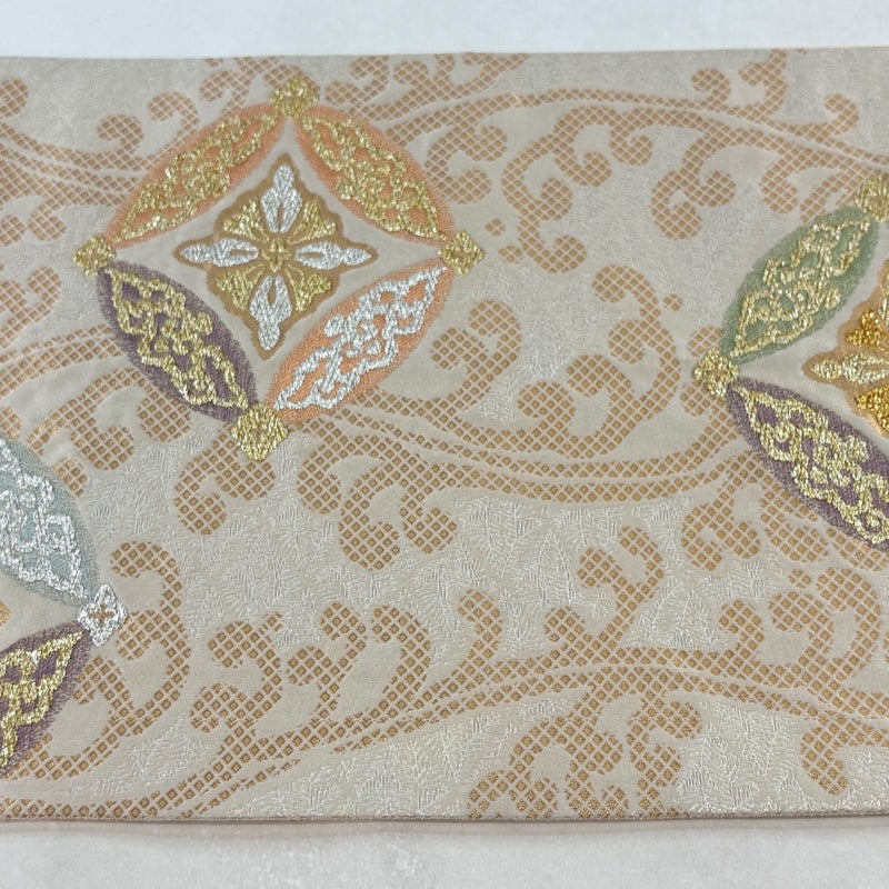 【袋帯】 白系 ベージュ 秀品 A 帯丈401cm~425cm 7990-9980 美品 二万以下
