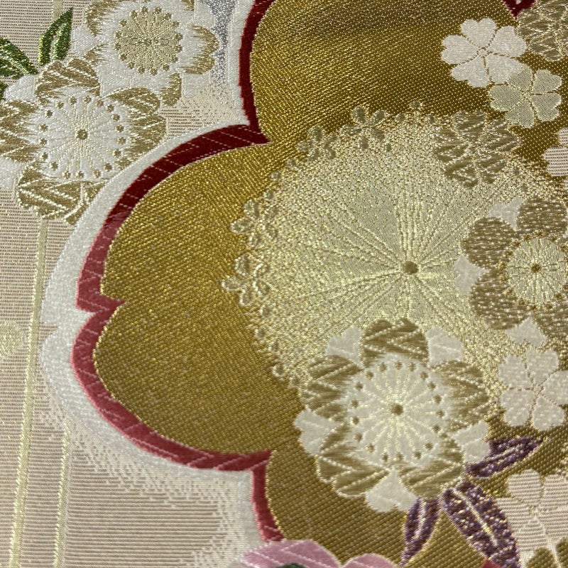 【袋帯】 白系 ベージュ 秀品 A 帯丈436cm以上 7990-9980 美品 二万以下