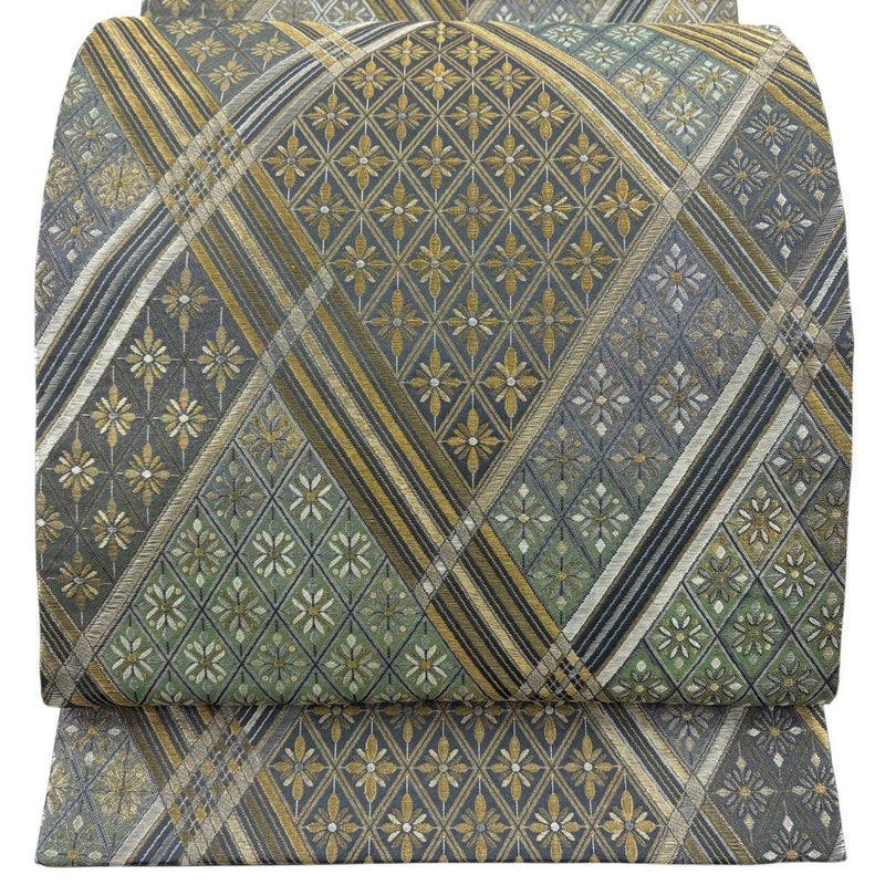 【袋帯】 灰色系 灰緑 秀品 B 帯丈426cm~435cm 4000-7980 二万以下