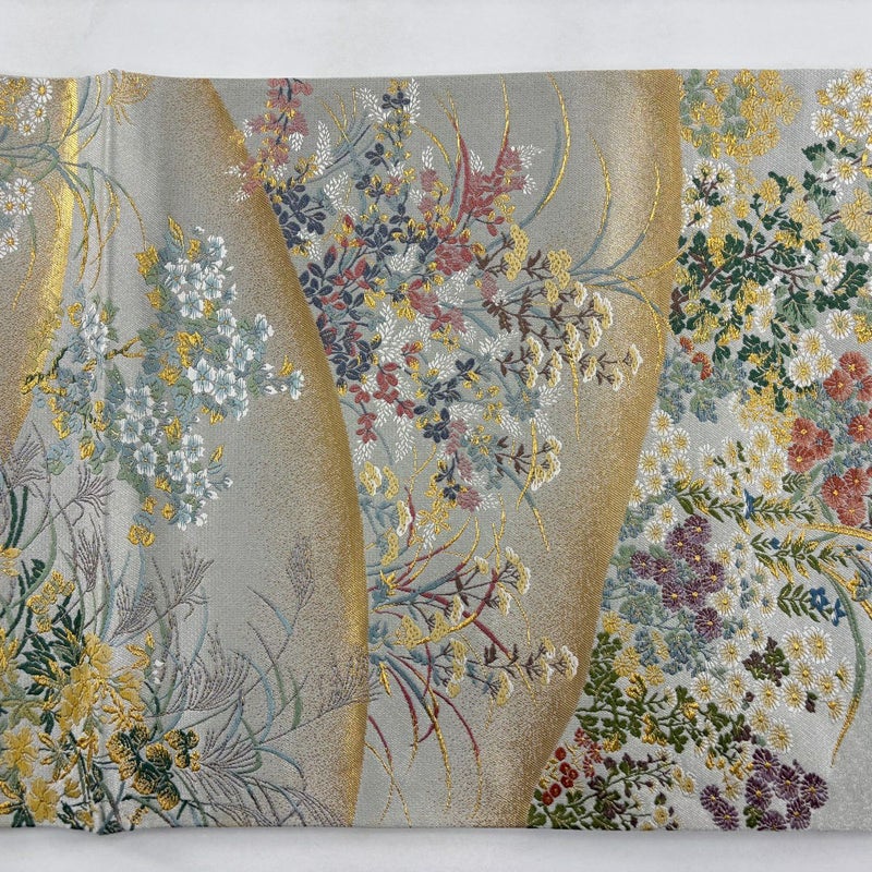 【袋帯】 灰色系 灰緑 秀品 A 帯丈426cm~435cm 7990-9980 美品 二万以下