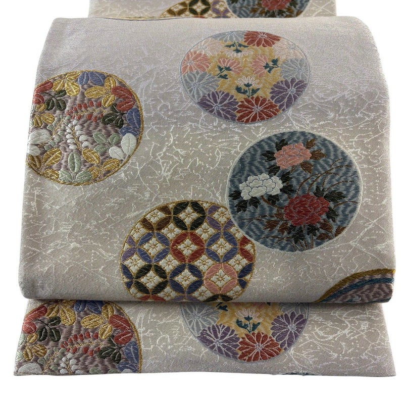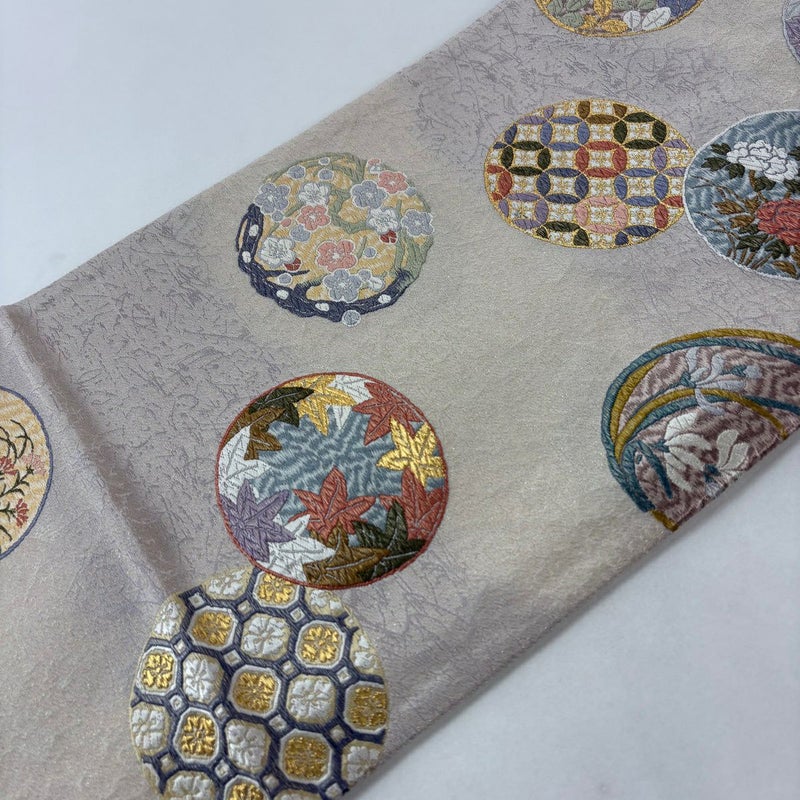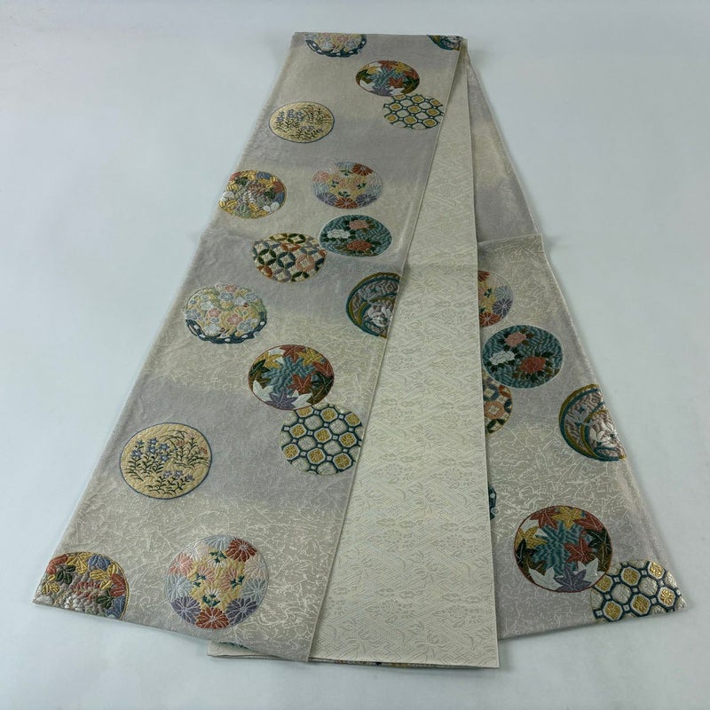 【袋帯】 白系 ベージュ 秀品 A 帯丈426cm~435cm 7990-9980 美品 二万以下