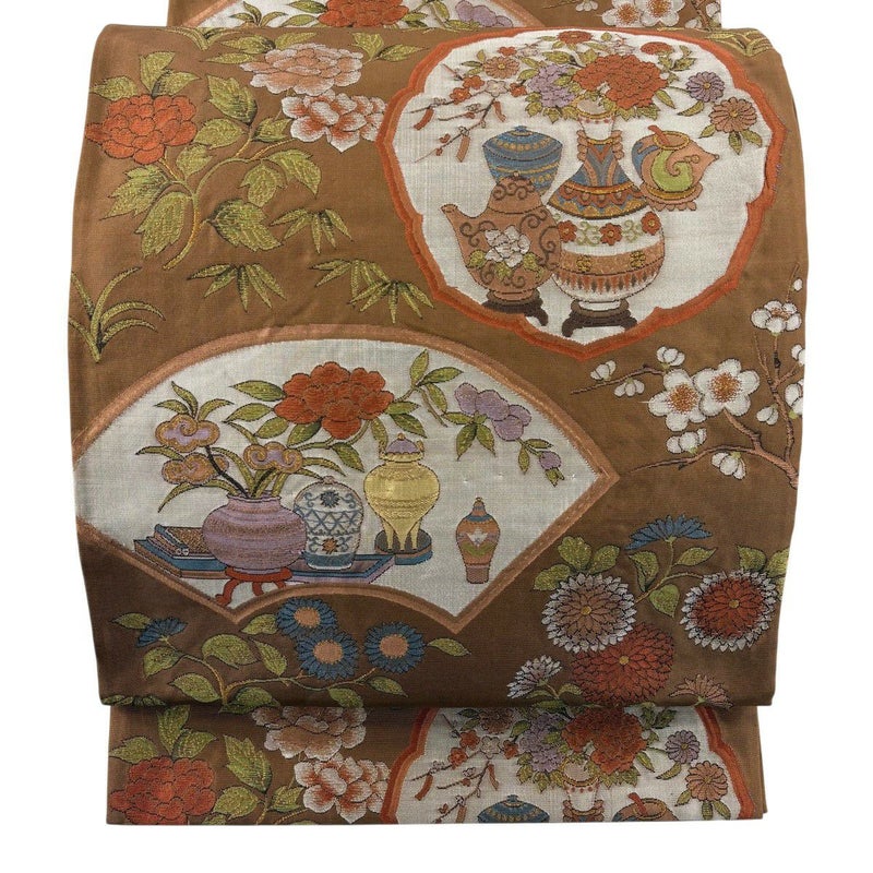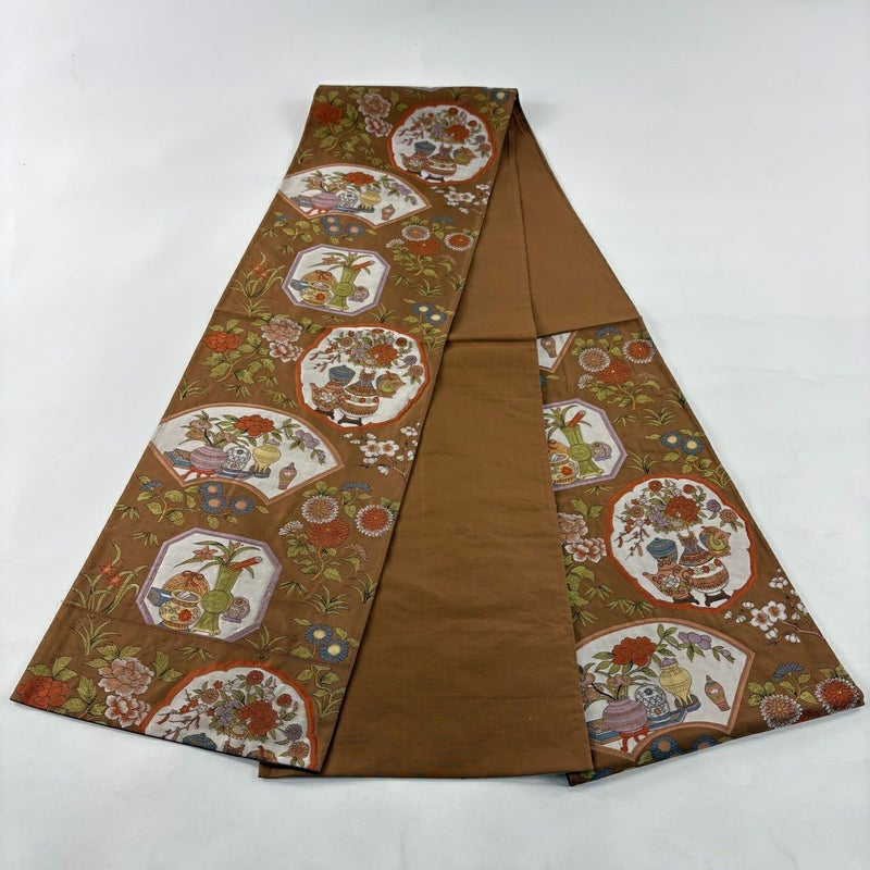 【袋帯】 茶系 茶色 秀品 A 帯丈426cm~435cm 7990-9980 美品 二万以下